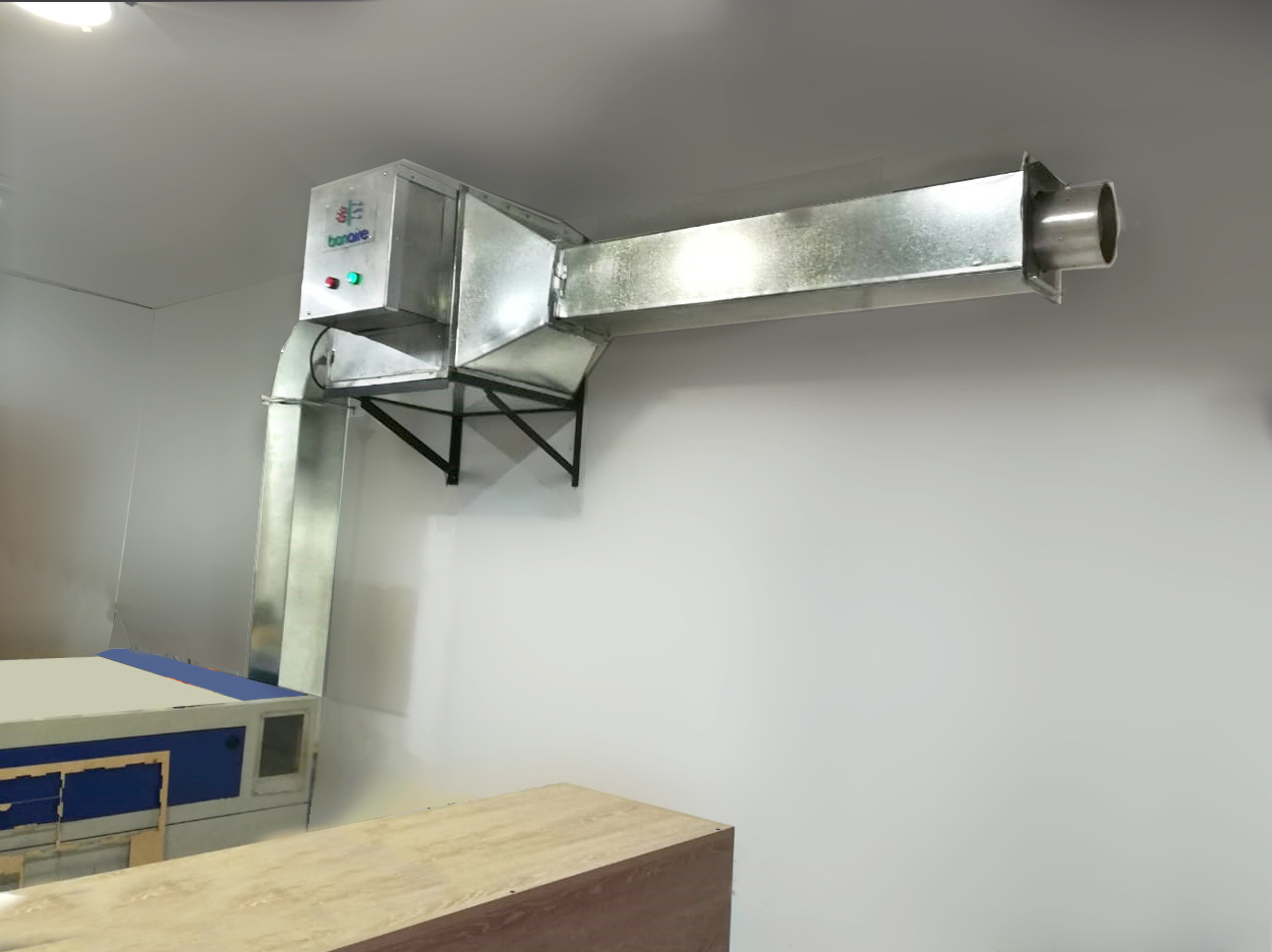 Retiene y elimina toda partícula de humo y olor emitida a causa de la evaporación de gases y desprendimiento de material durante el proceso de corte, grabado láser y/o plasma.